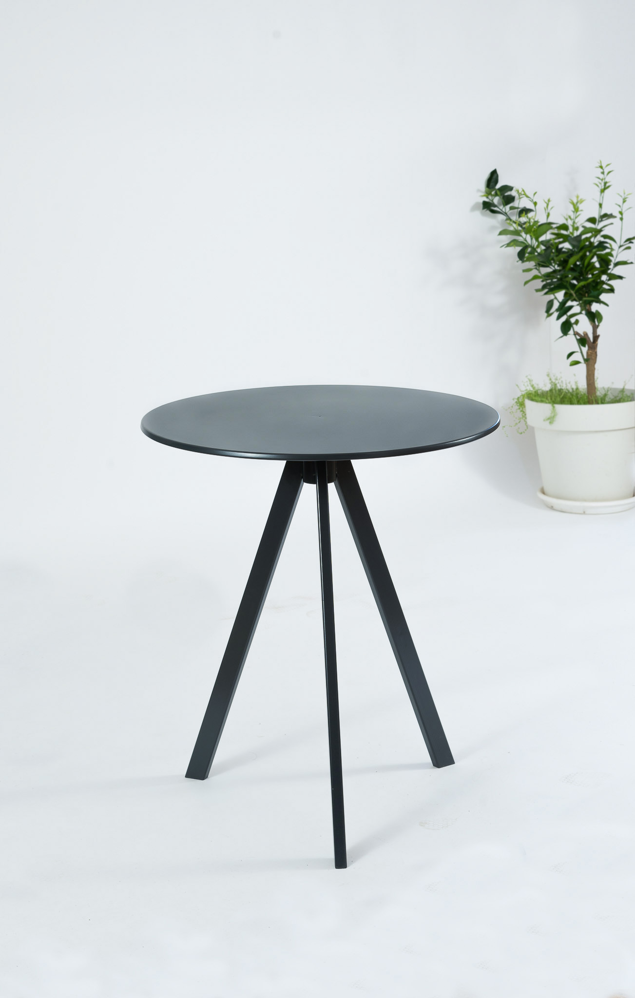 Ploča stola izrađena je od metala debljine 1 cm, što osigurava čvrstoću i stabilnost, dok minimalistička konstrukcija daje elegantan i moderan izgled.